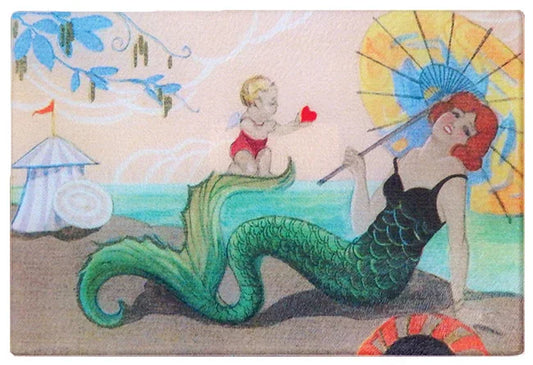 Art Deco Mermaid Tempered Glass Cutting Board