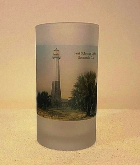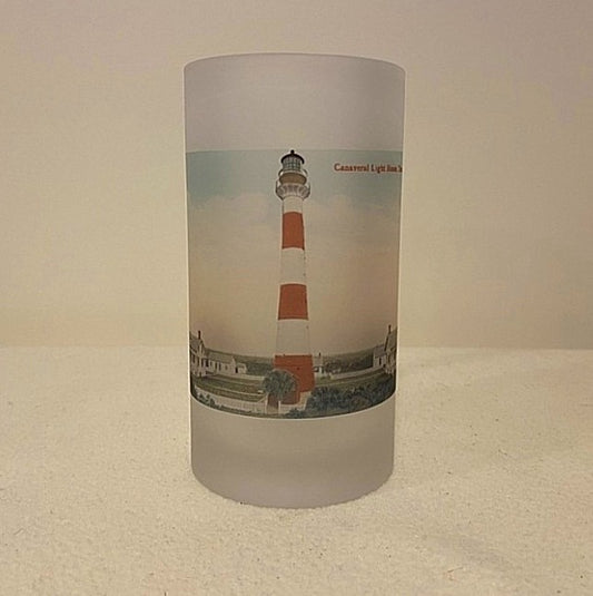 Colorful Frosted Glass Mug of Canaveral Light in Titusville, Florida