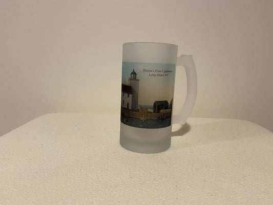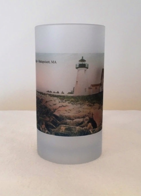 Colorful Frosted Glass Beer Mug Of Ned's Point Light in Mattapoisett, MA