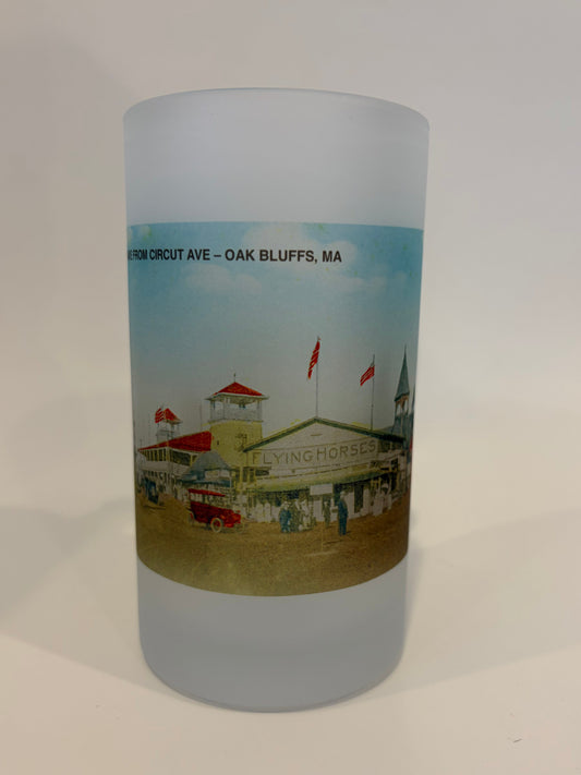 Colorful Frosted Glass Beer Mug of Martha's Vineyard's Historic Flying Horses Carousel
