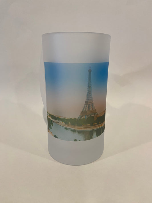 Colorful Frosted Glass Beer Mug of The Eiffel Tower
