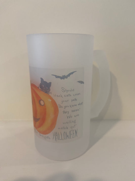 Jack O' Lantern Frosted Glass Beer Mug Created From Archival Postcard