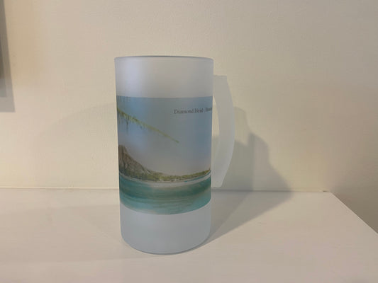 Colorful Frosted Glass Beer Mug Of Diamond Head In Honolulu, Hawaii - Circa 1925
