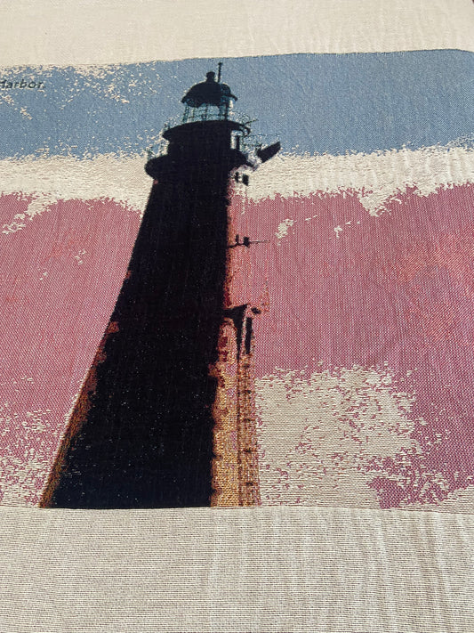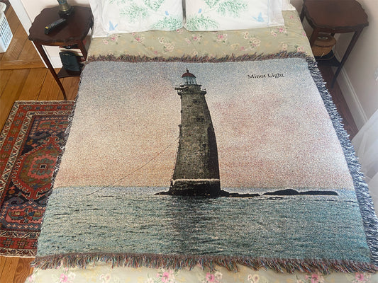 Jacquard Weave Cotton Throw of Minot's Ledge Light "1-4-3"