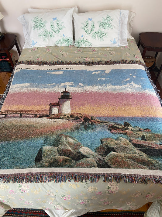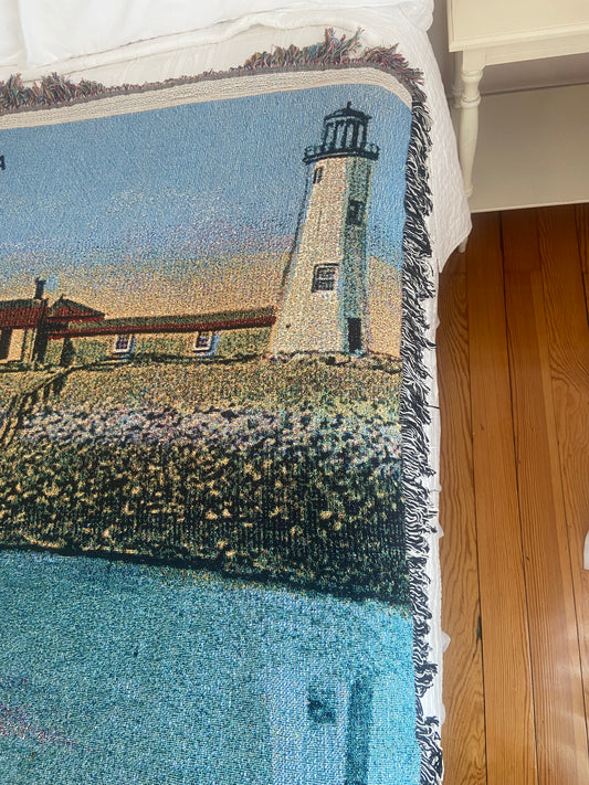 Jacquard Weave Cotton Throw Blanket Of Nantucket's Brant Point Light