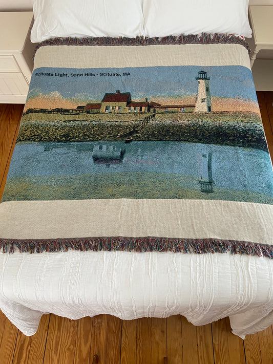 Jacquard Weave Throw Blanket of Gurnet Lights in Duxbury, MA
