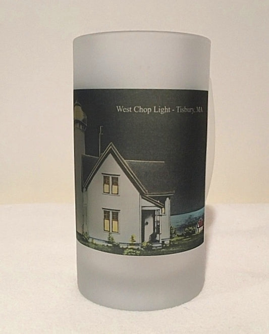 Colorful Frosted Glass Beer Mug of East Chop Light on Martha's Vineyard