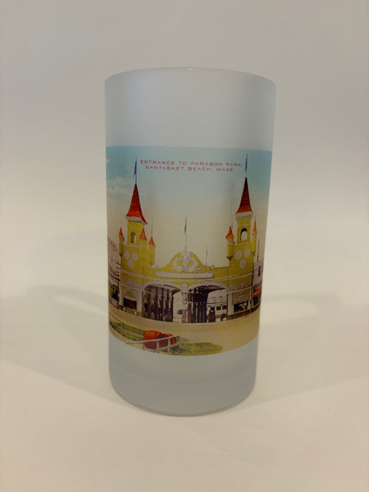 Colorful Frosted Glass Beer Mug Of Early Paragon Park Entrance At Nantasket Beach - Circa 1900