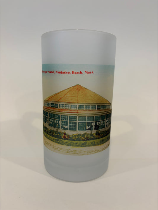 Colorful Frosted Glass Beer Mug of Martha's Vineyard's Historic Flying Horses Carousel