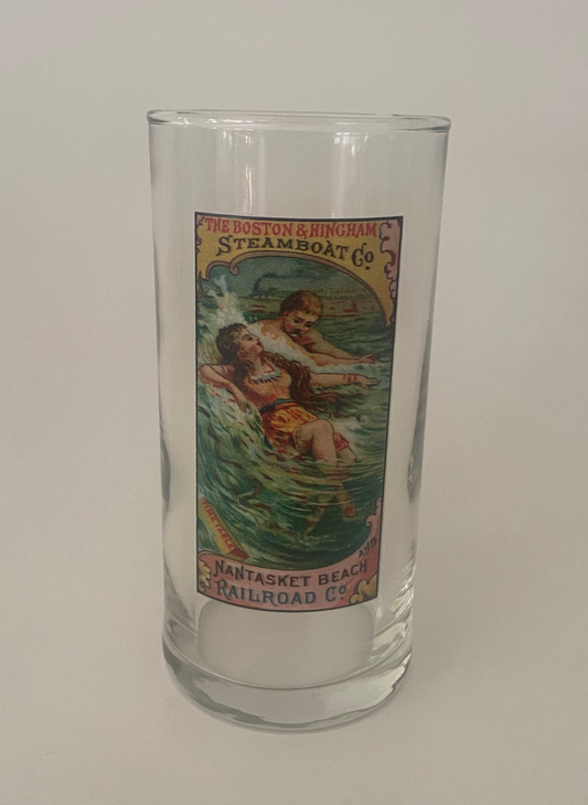 Colorful Hingham Steamship Timetable Highball Glasses Sold In Sets of 4.