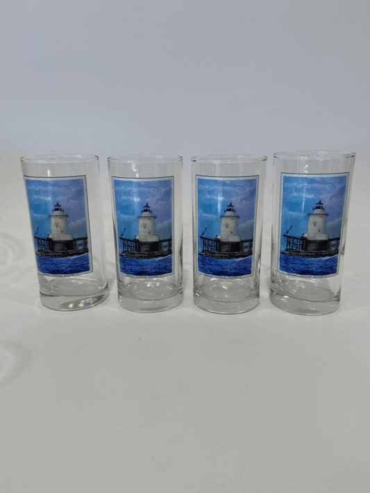 Sakonnet Light Off Little Compton, RI As Colorful Highball Glasses. Sold In Sets of 4