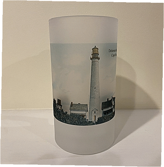 Colorful Frosted Glass Beer Mug of Cape May Lighthouse
