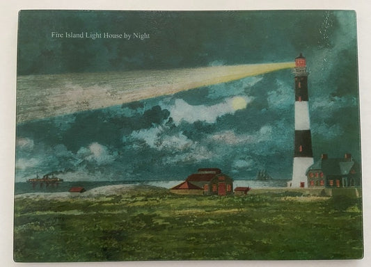 Fire Island Light at Night In A Colorful And Durable Tempered Glass Cutting Board Large - 15x11.