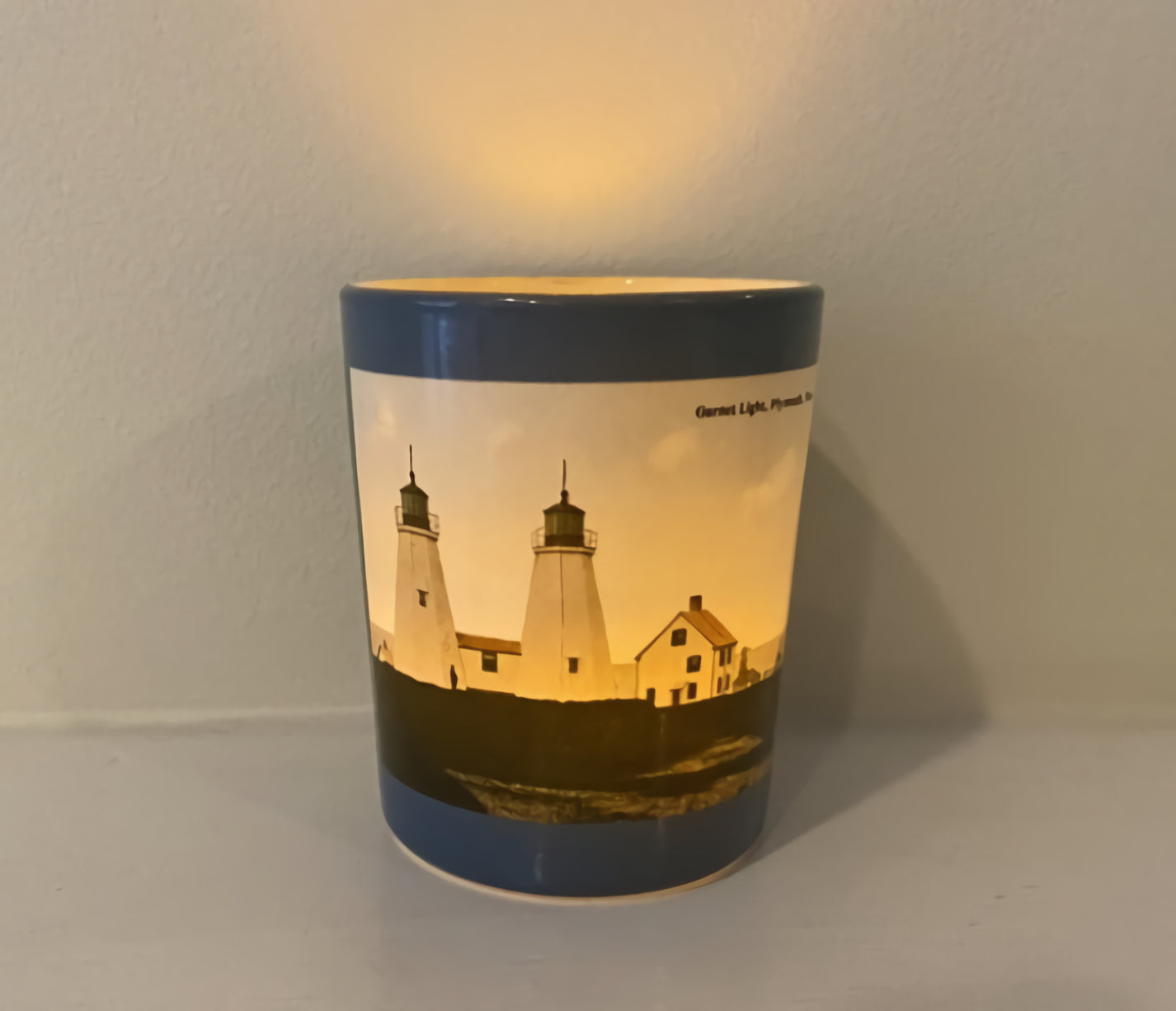 Duxbury MA Twin Lights of The Gurnet As A Colorful Votive Candle Holder